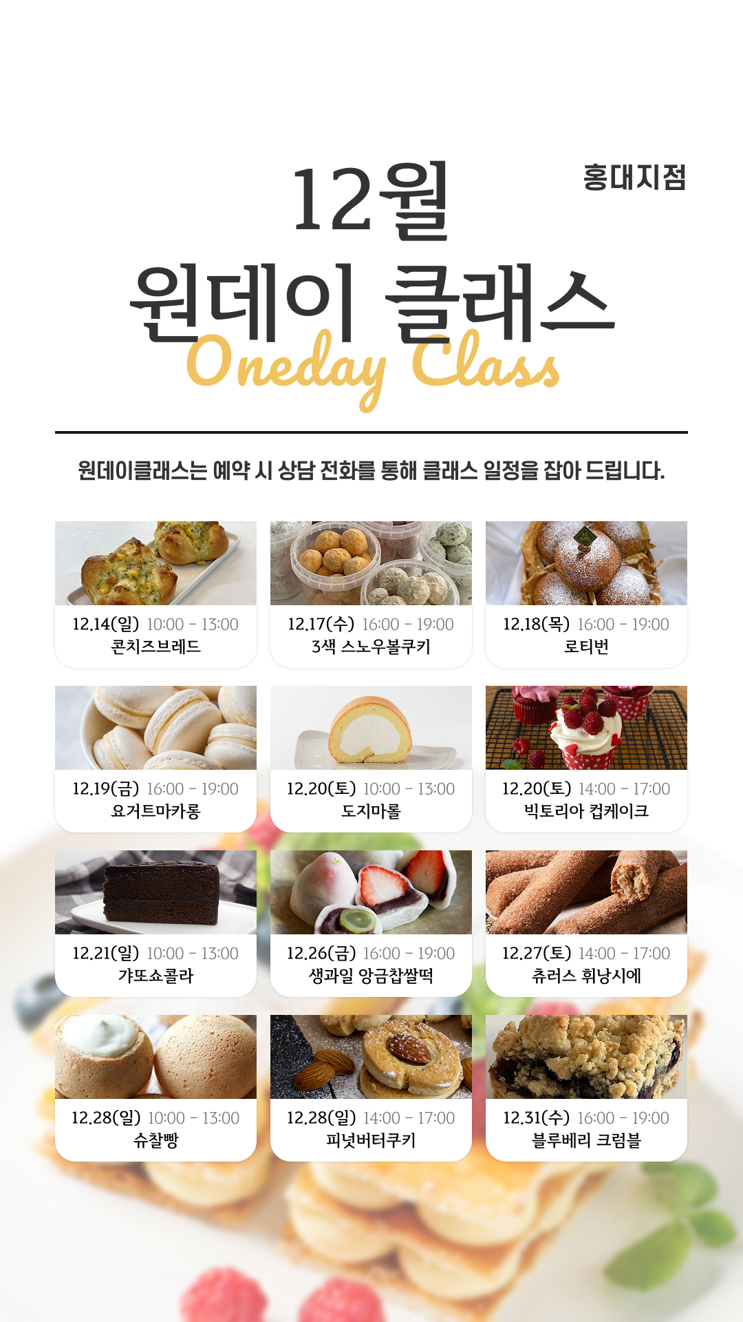 12월 지점별 원데이 클래스